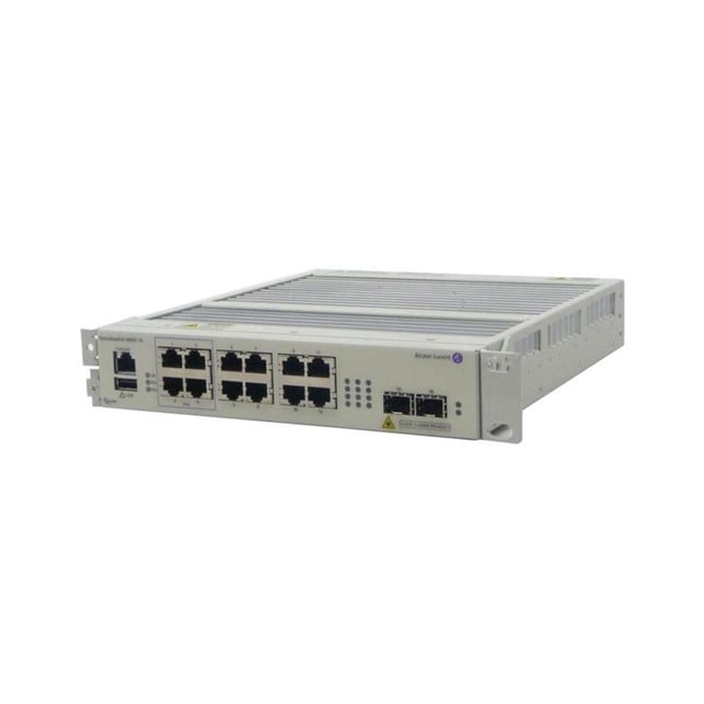 - OS6855-14D Hardened Gigabit Ethernet L3 fixed configuration fanless chassis in a 1U form factor designed to operate in harsh environments.
