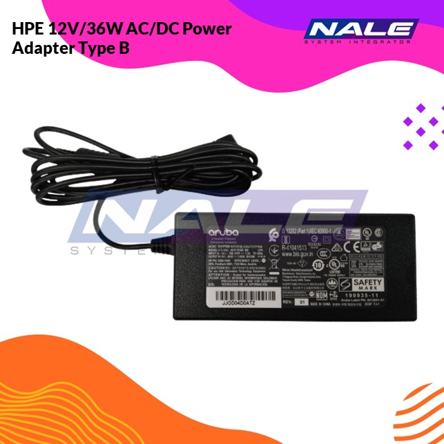 Aruba/HPE 12V/36W AC/DC Power Adapter Type B (R3K00A)