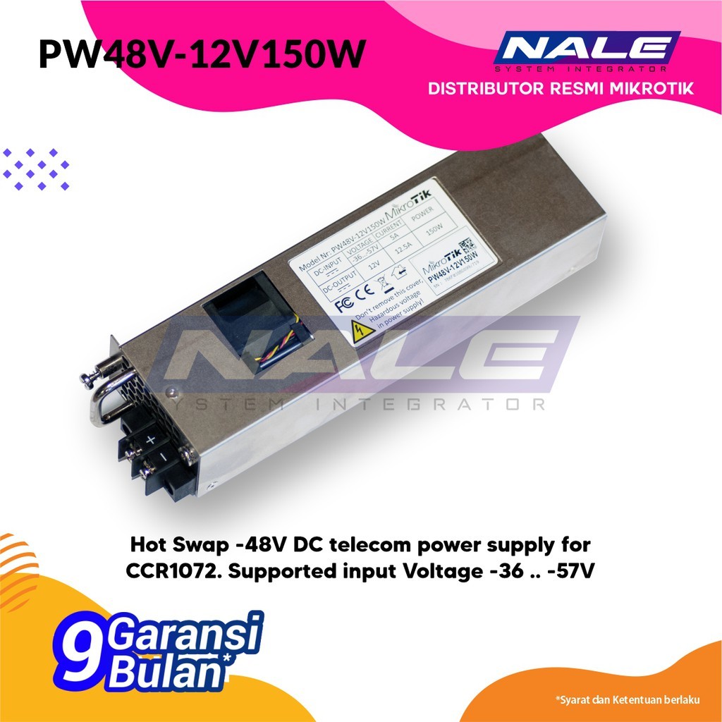Kami sekarang menawarkan catu daya telekomunikasi Hot Swap -48V DC (kode produk PW48V-12V150W), tersedia untuk dibeli secara terpisah untuk digunakan dengan CCR1072.