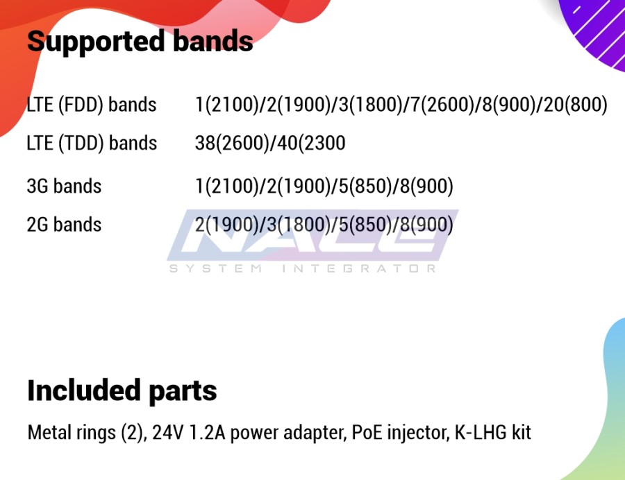 Sudah termasuk 24V 1.2A power adapter, K-LHG kit, PoE injector, Metal rings (2)