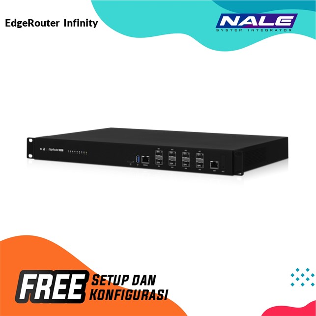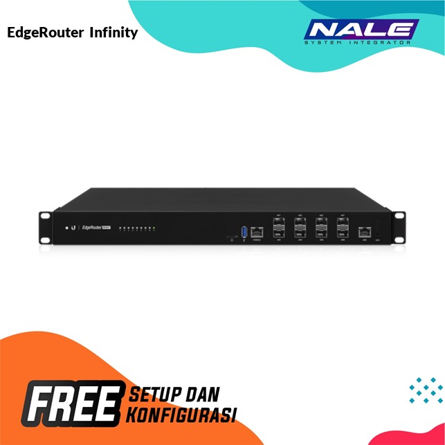 EdgeRouter Infinity menggabungkan throughput agregat 80 Gbps dengan harga / nilai kinerja dalam faktor bentuk yang dapat dipasang di rak. Delapan port SFP + menawarkan konektivitas serat 10G, dan port Gigabit Ethernet RJ45 menawarkan konektivitas tembaga. EdgeRouter Infinity mencakup modul catu daya AC / DC utama dan cadangan untuk redundansi. Ini mendukung konfigurasi yang dapat diskalakan menggunakan EdgeOS atau UISP.