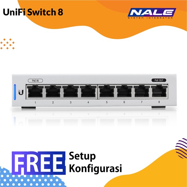 The UniFi® Beralih 8 fitur fleksibilitas yang didukung oleh PoE atau dengan AC / DC adaptor disertakan. Satu port passthrough PoE menyediakan output PoE hingga 12W untuk memberi daya pada titik akses UniFi atau perangkat PoE lainnya. US-8 menawarkan (8) Gigabit Ethernet port dan mendukung total hingga 8 Gbps, line rate non-blocking.