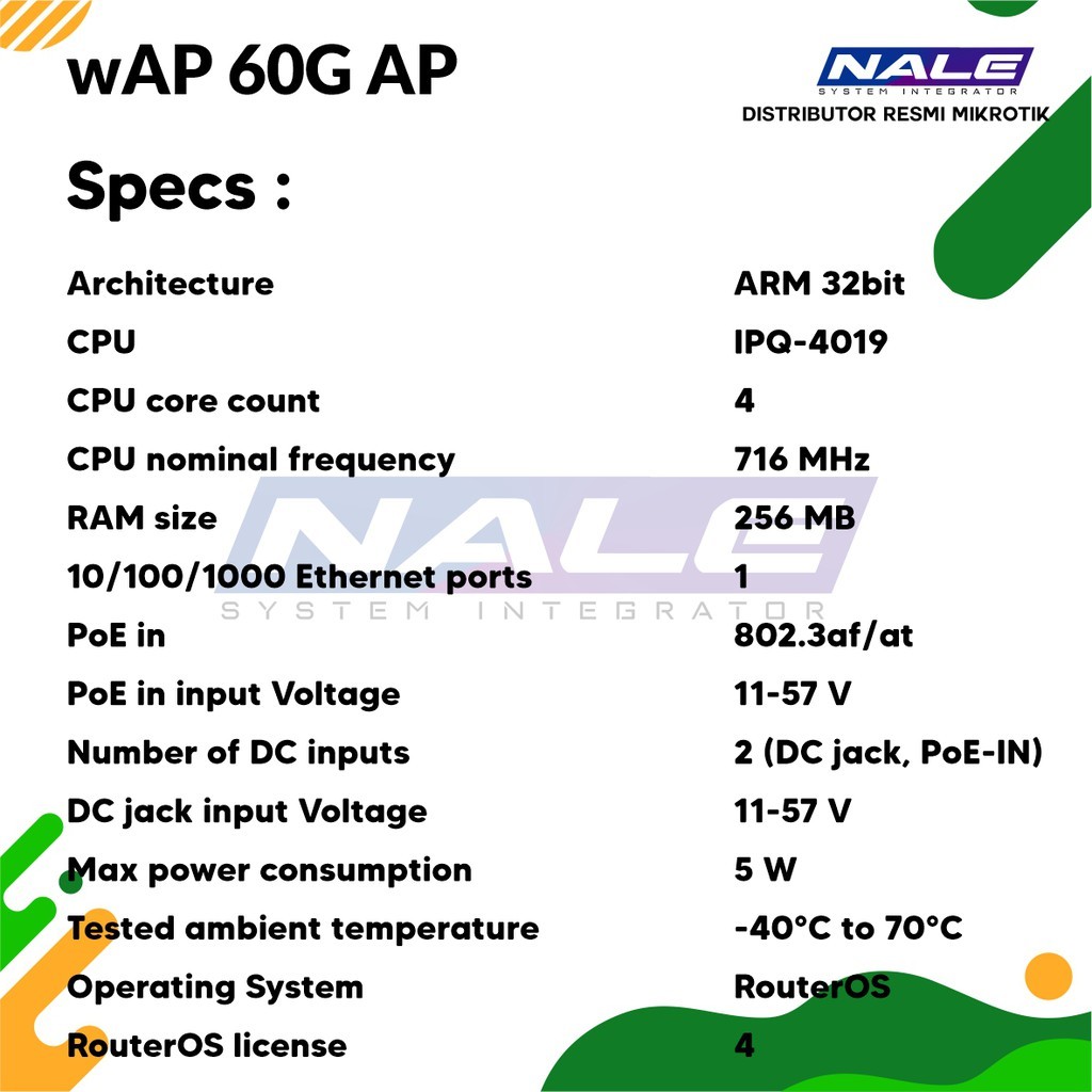 *sudah termasuk 24V 0.38A power adapter , Metal ring (1), Plastic zip tie , wAP desktop stand , wAP mount bracket , Gigabit PoE injector